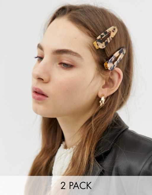 Asos Design Pack Of 2 Hair Clips Snap Shape In Tortoiseshell