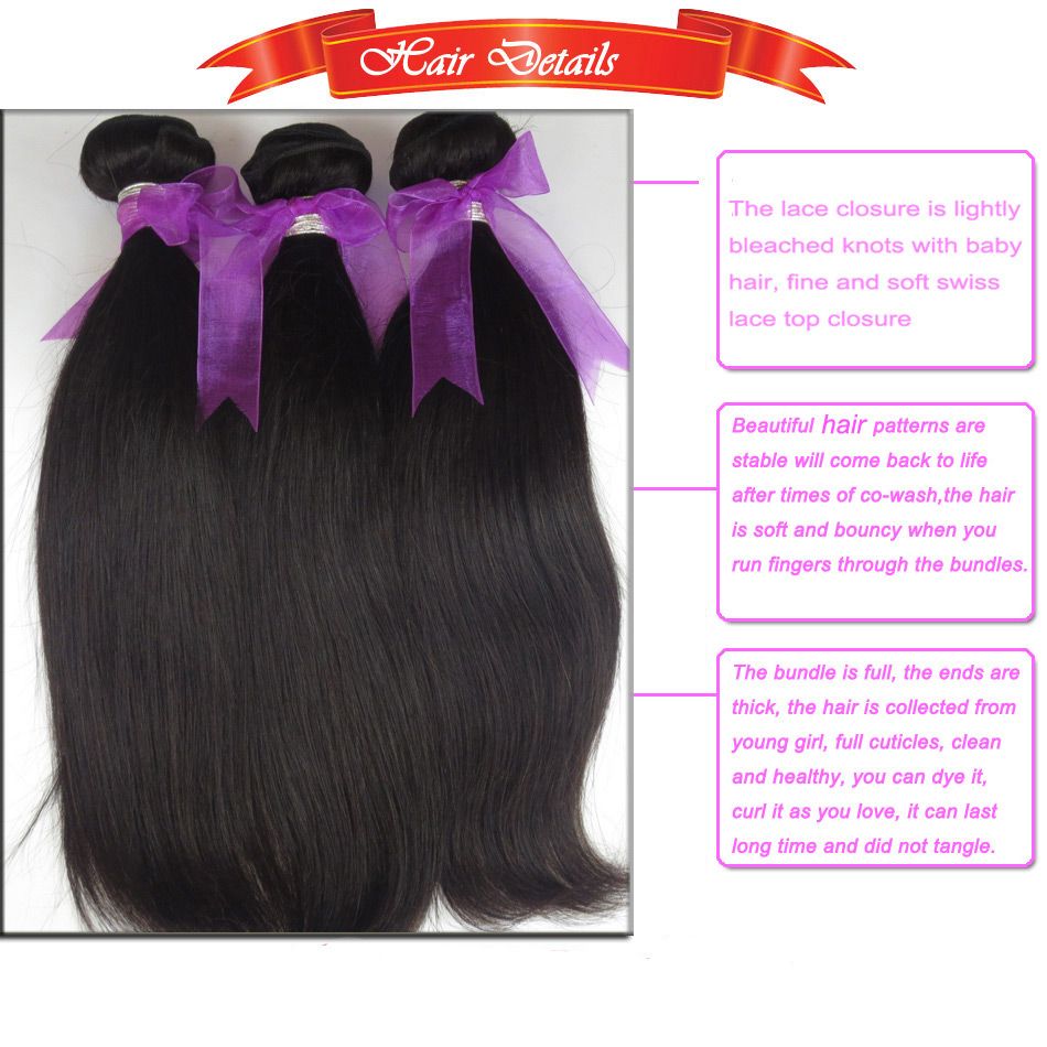 July Queen Brazilian Virgin Human Hair 4 Bundles 50g Bundle Deals With 4x4 Lace Closure