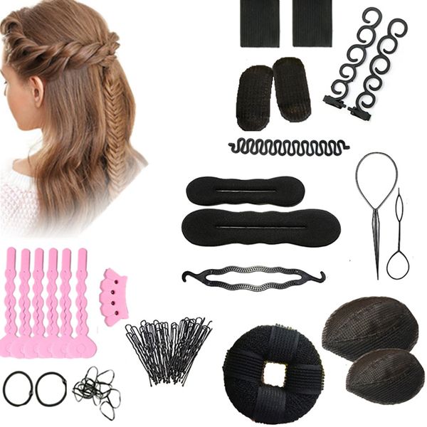 1set Diy Hair Styling Accessories Tools Kit Set Hair Bun Maker Clip Hairpins Roller Braid Twist Sponge Donut Hair Styles